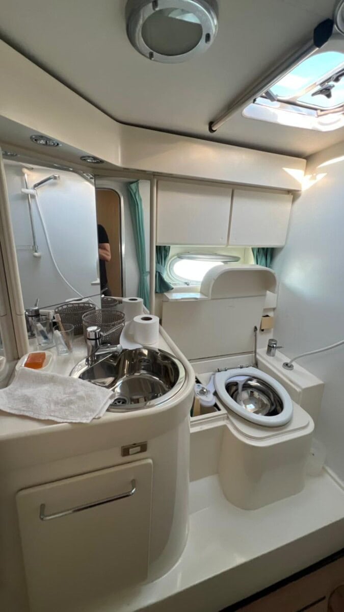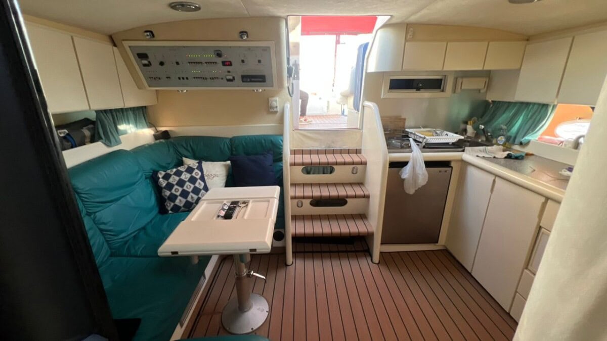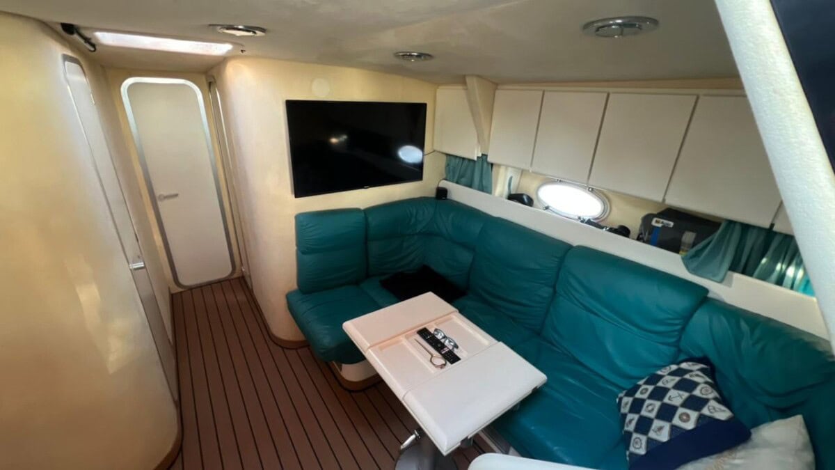 Plotter Garmin, WEBASTO, AA, TV 43, equipo audio con cuatro pares de parlantes. Alfombras Seadeck en toda la cubierta e interiores.